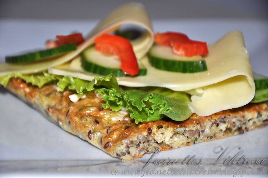Jag fick en längtan efter bröd här om dagen och hittade detta receptet i kokboken "Snabbt ner i vikt med LCHF - enkelt & supergott" från tidningen MåBra.